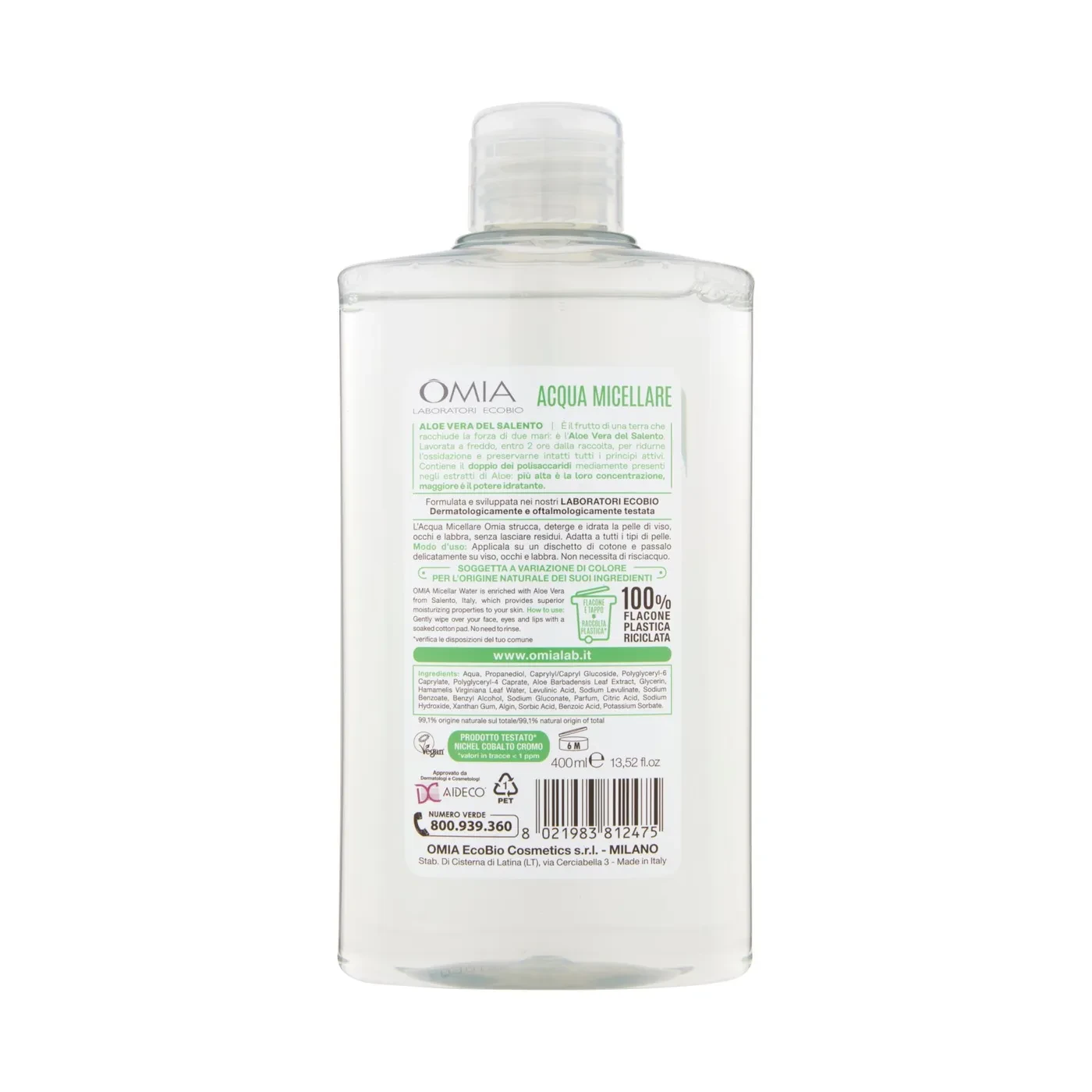 Omia Laboratori Ecobio Acqua Micellare Strucca & Deterge aloe vera 400 ml