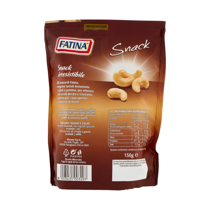 Fatina Snack Anacardi Tostati e Salati 150 g