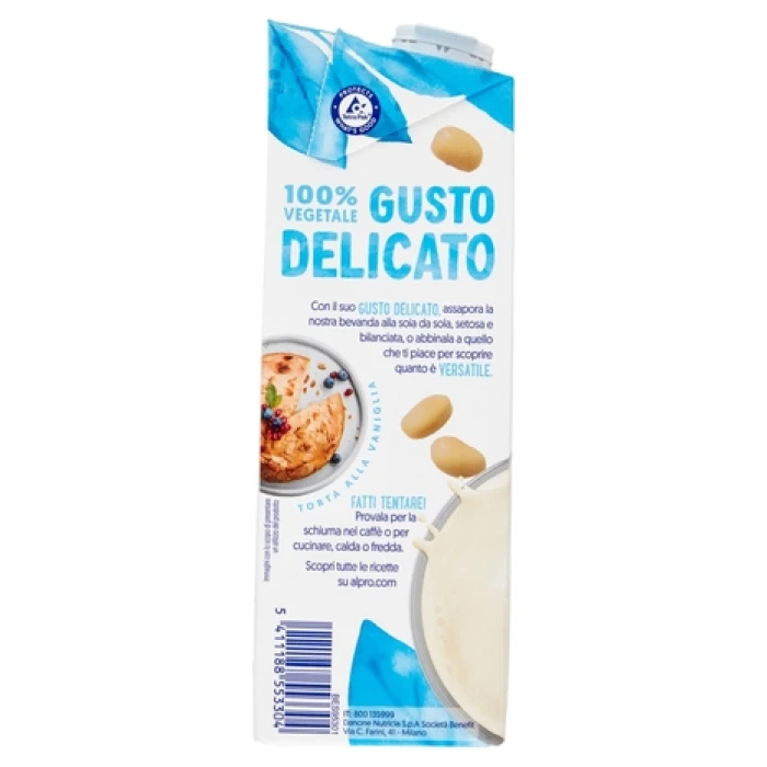 ALPRO CLASSICO alla Soia è preparato esclusivamente con semi di soia di altissima qualità, senza conservanti o OGM, lavorati e miscelati per ottenere una bevanda delicata e cremosa. La bevanda alla Soia ALPRO racchiude tutta la bontà dei semi della soia e con il suo gusto leggermente dolce, è uno dei più desiderati della linea ALPRO. Ideale per una colazione con i cereali o come bevanda durante le pause. ALPRO Bevanda alla Soia è perfetto per ogni momento della tua giornata (e della notte)! Goditi una pausa in leggerezza e gustalo con il sorriso: ALPRO CLASSICO alla Soia non contiene zuccheri aggiunti ed edulcoranti. Cosa aspetti? Provalo Subito! Prendici gusto nel modo giusto! ALPRO alla Soia è un’alternativa 100% Vegetale al latte, senza lattosio, ricco di proteine vegetali, ideale per chi segue un regime alimentare vegano o vegetariano o chi è intollerante alle proteine del latte e al glutine. ALPRO alla SOIA è disponibile anche nel pratico formato da 500ml. Scopri anche tutti gli altri prodotti della Linea ALPRO: ALPRO Bevanda all’Avena, ALPRO Bevanda al Cocco, ALPRO Bevanda al Riso e ALPRO Bevanda alla Mandorla. Buoni da leccarsi i baffi! È BUONO PER TE. BUONO PER IL PIANETA!