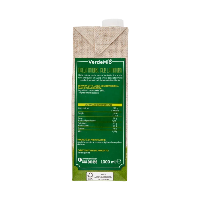 AcquaSoia* (8%)* ingrediente biologico Allergeni: Contiene Soia - Non contieneGlutine