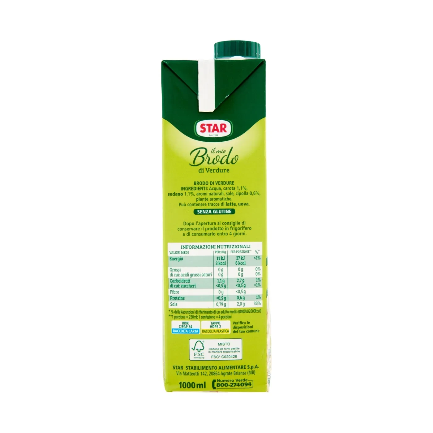 Acqua, Carota 1,1%, Sedano 1,1%, Aromi naturali, Sale, Cipolla 0,6%, Piante aromatiche, Può contenere tracce di latte, uova, Senza glutine