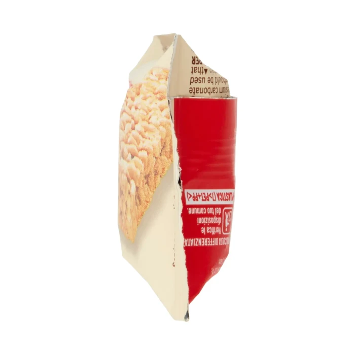 Sciroppo di fruttosio-glucosio, Fiocchi di soia (proteine isolate di soia (18,6% sul prodotto finito), amido di tapioca, sale) (21,9%), Fiocchi di riso (farina di riso, semola di mais, zucchero, sale), Biscotti in granuli (farina di mais, zucchero, farina di riso, amido di mais, olio di girasole, sale, agenti lievitanti: carbonati di sodio e carbonati di ammonio, addensante: gomma di guar, aroma, colorante: caramello semplice) (5,5%), Fiocchi di mais estruso (farina di mais, zucchero, sale), Fiocchi di avena (senza glutine) (4,1%), Burro di cacao, Maltodestrina, Addensante: gomma di acacia, Carbonato di magnesio, Olio di girasole, Emulsionante: lecitine, Aroma naturale, Colorante: riboflavine, Cloridrato di tiamina, Può contenere tracce di frutta a guscio, arachidi, semi di sesamo, latte