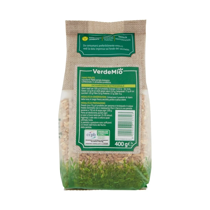 Per 100 g di prodotto - Energia:: 1530 kJ - 361 kcal, Grassi:: 2,0 g, di cui acidi grassi saturi:: 0,4 g, Carboidrati:: 71 g, di cui zuccheri:: 1,0 g, Fibre:: 5,6 g, Proteine:: 12 g, Sale:: 0 g