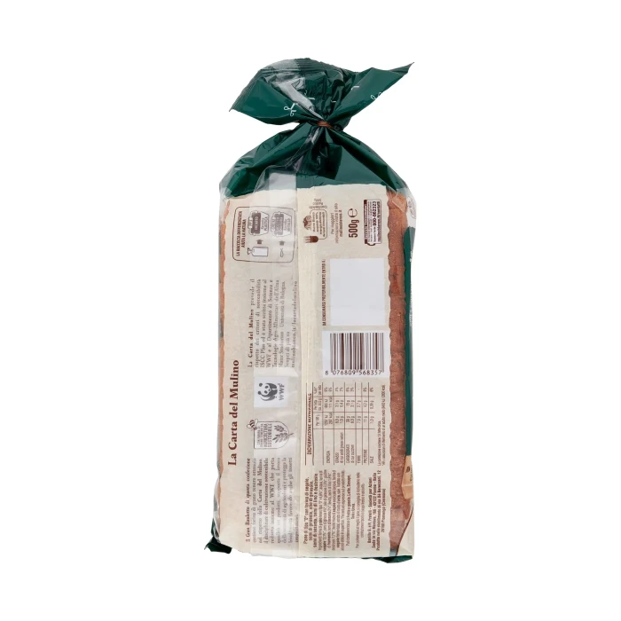 Per 100 g di prodotto - Energia: 1207 kJ, : 287 kcal, Grassi: 8,0 g, di cui acidi grassi saturi: 1,0 g, Carboidrati: 39 g, di cui zuccheri: 8,0 g, Fibre: 7,0 g, Proteine: 11 g, Sale: 1,0 g, La confezione contiene 13 fette circa: , *AR = assunzioni di riferimento di un adulto medio (8400 kJ / 2000 kcal):
