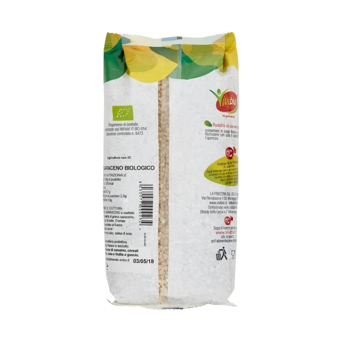 Per 100 g di prodotto - Energia : 1477 kJ-350 kcal, Grassi : 3,4 g, di cui acidi grassi saturi : 0,7 g, Carboidrati : 62 g, di cui zuccheri : 2,0 g, Fibre : 10 g, Proteine : 13 g, Sale : <0,01 g