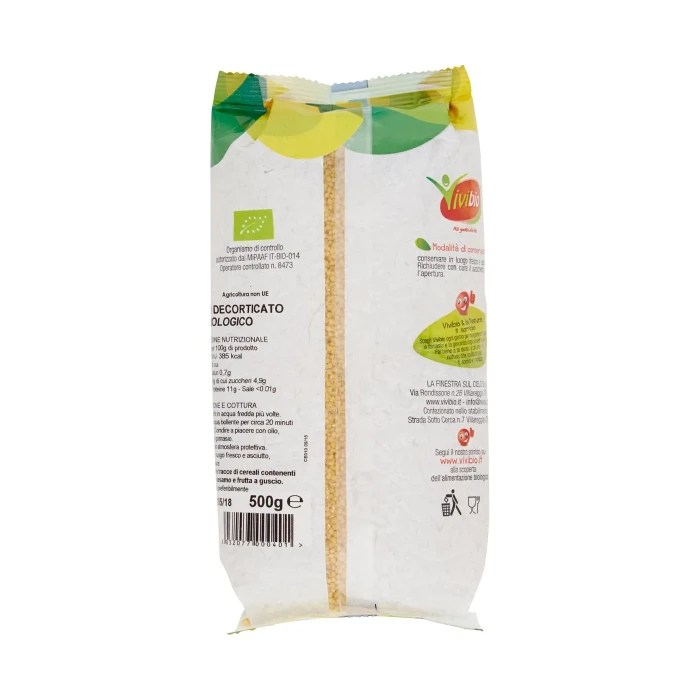 Per 100 g di prodotto - Energia : 1628 kJ- 385 kcal, Grassi : 4,2g, di cui acidi grassi saturi : 0,7g, Carboidrati : 74g, di cui zuccheri : 4,9g, Fibre : 3,1g, Proteine : 11g, Sale : <0.01g