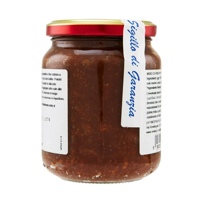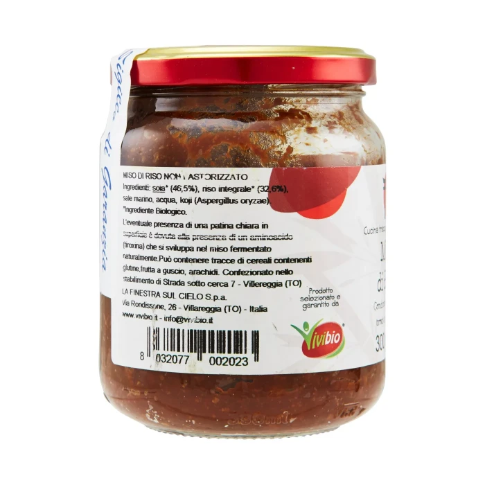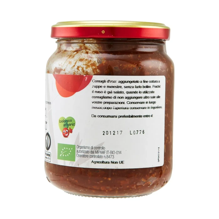 Soia* (46,5%), Riso integrale* (32,6%), Sale marino, Acqua, Koji (Aspergillus oryzae), *Ingrediente biologico, L'eventuale presenza di una patina chiara in superficie è dovuta alla presenza di un aminoacido (tiroxina) che si sviluppa nel miso fermentato naturalmente, Può contenere tracce di cereali contenenti glutine, frutta a guscio, arachidi