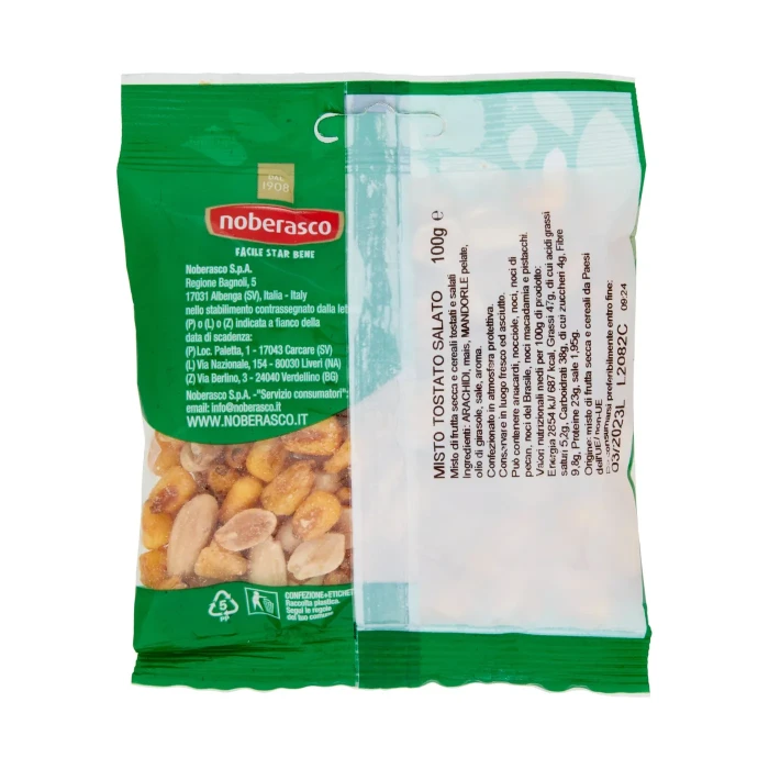 Arachidi, Mais, Mandorle pelate, Olio di girasole, Sale, Aroma, Può contenere anacardi, nocciole, noci, noci di pecan, noci del Brasile, noci macadamia e pistacchi