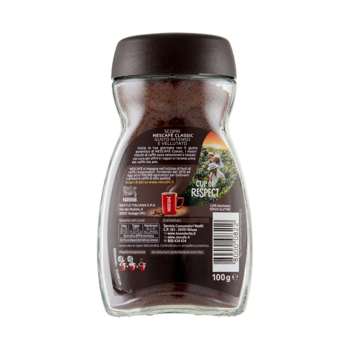 Inizia le tue giornate con il gusto autentico di Nescafé Classic. I nostri chicchi di caffè sono selezionati e tostati con cura per offrirti i sapori e l'aroma unico del caffè che ami.