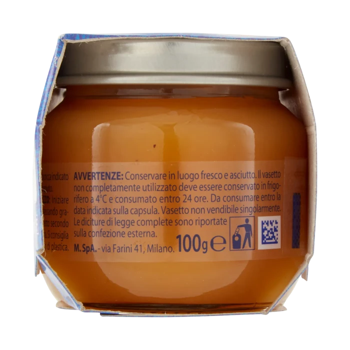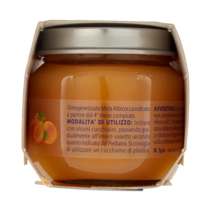 Purea di mela (34%), Purea di albicocca (30%), Succo di mela da concentrato (19%), Acqua, Amido di mais, Correttore di acidità: carbonato di calcio, Vitamina C