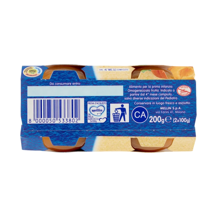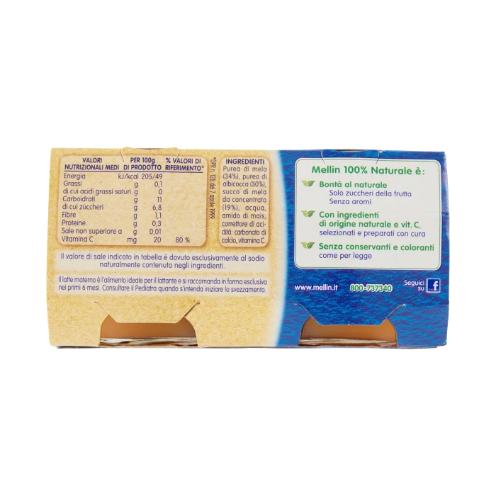 Mellin Mela Albicocca 100% Naturale Omogeneizzato 2 x 100 g
