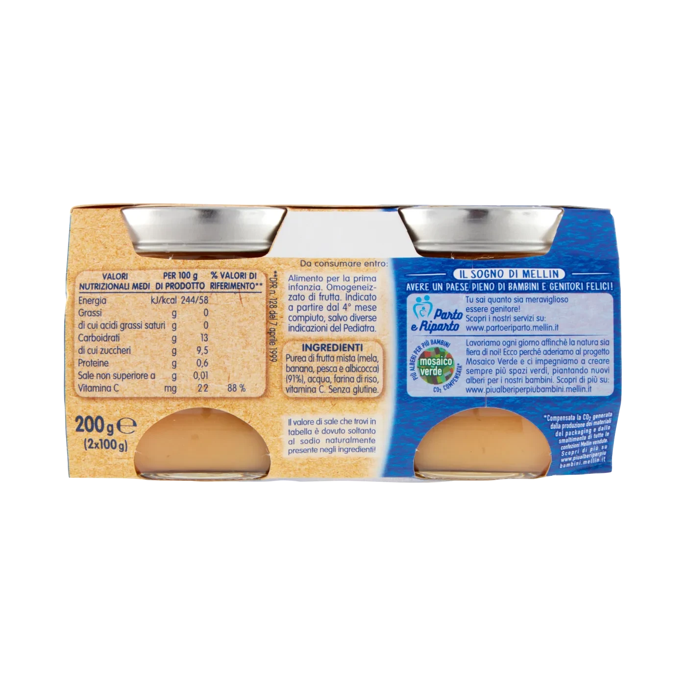 MELLIN Omogeneizzato di Frutta Mista 2 x 100 g