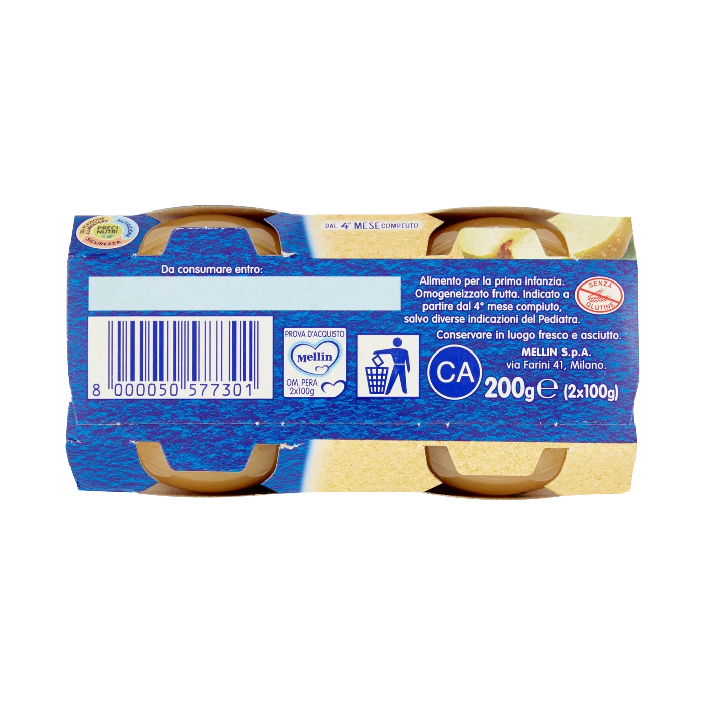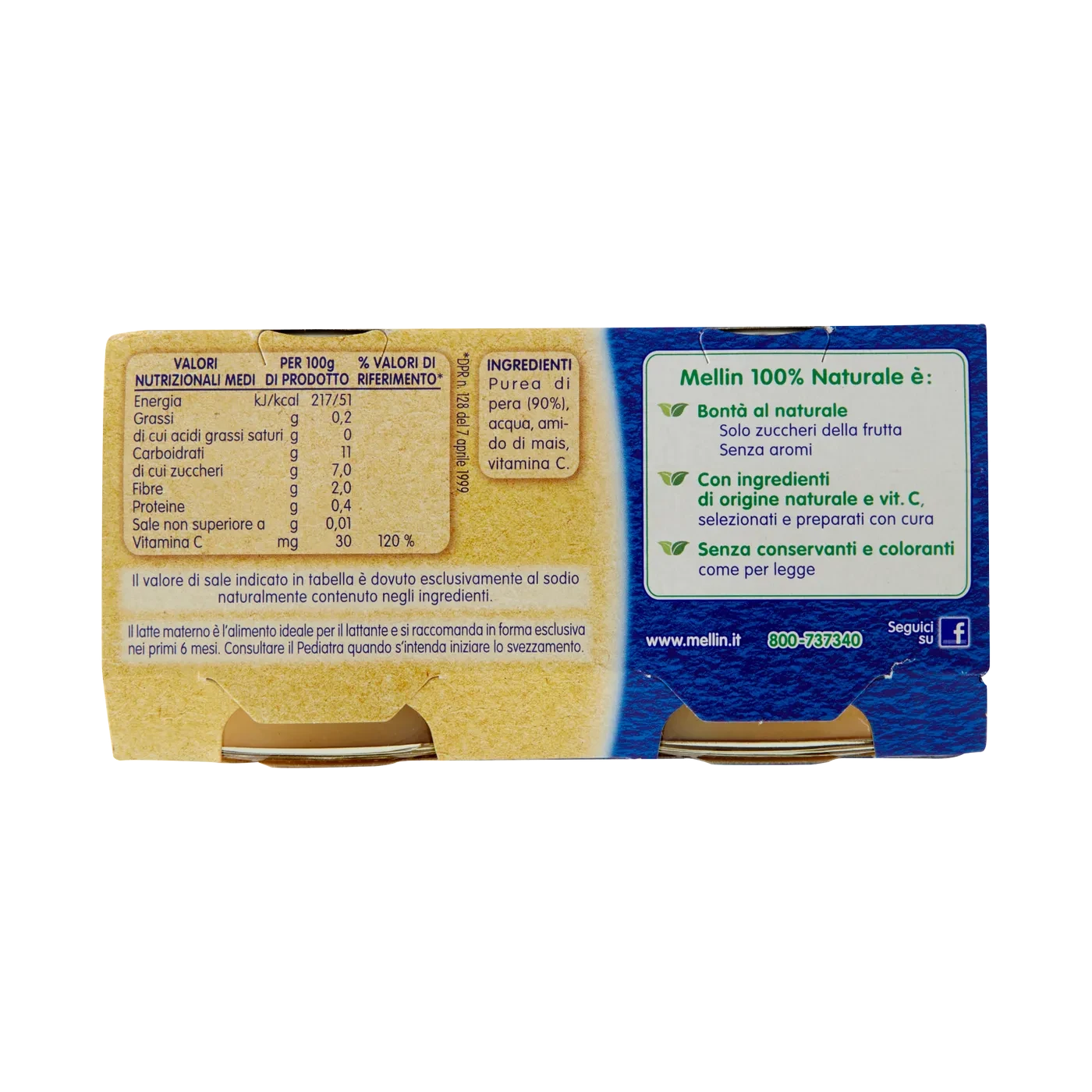 Mellin Pera 100% Naturale Omogeneizzato 2 x 100 g
