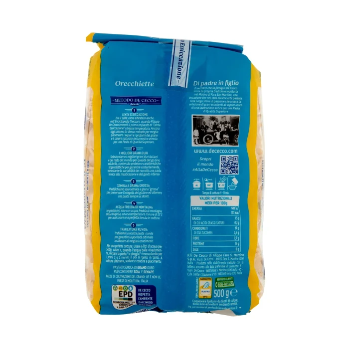 Per 100 g di prodotto - Energia : 1490 kJ, : 351 kcal, Grassi : 1,5 g, di cui acidi grassi saturi : 0,3 g, Carboidrati : 69 g, di cui zuccheri : 3,4 g, Fibre : 2,9 g, Proteine : 14 g, Sale : 0 g