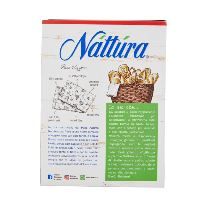 Per 100 g di prodotto - Energia : 1589 kJ - 375 kcal, Grassi : 1,2 g, di cui acidi grassi saturi : 0,3 g, Carboidrati : 78 g, di cui zuccheri : 2,7 g, Fibre : 3,5 g, Proteine : 11 g, Sale : 0,01 g, * Una confezione contiene 12 sfoglie : , ** AR: Assunzioni di riferimento di un adulto medio (8400kJ/2000kcal) :