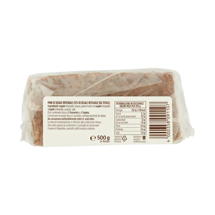 Segale integrale, Acqua, Pasta madre di segale integrale (segale integrale, acqua), Sale, Può contenere tracce di frumento e di lupino