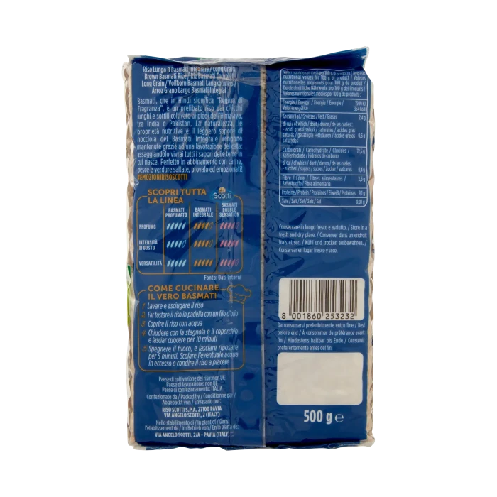 Per 100 g di prodotto - Energia : 1500 kJ, : 354 kcal, Grassi : 2,4 g, di cui:: , - acidi grassi saturi : 0,6 g, Carboidrati : 72,5 g, di cui:: , - zuccheri : 0,4 g, Fibre : 2,5 g, Proteine : 9,1 g, Sale : 0,01 g