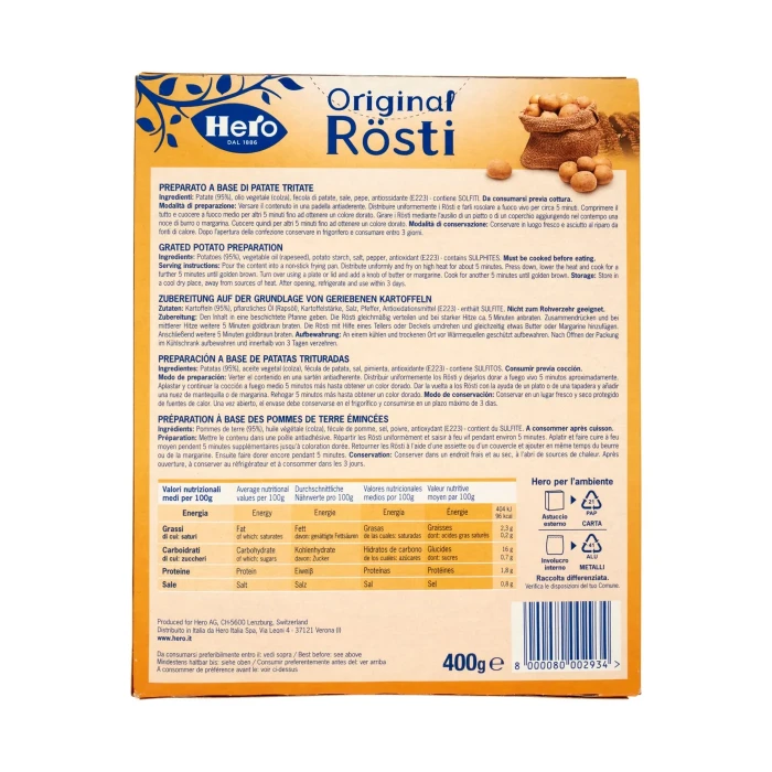 Patate (95%), Olio vegetale (colza), Fecola di patate, Sale, Pepe, Antiossidante (E223) - contiene solfiti