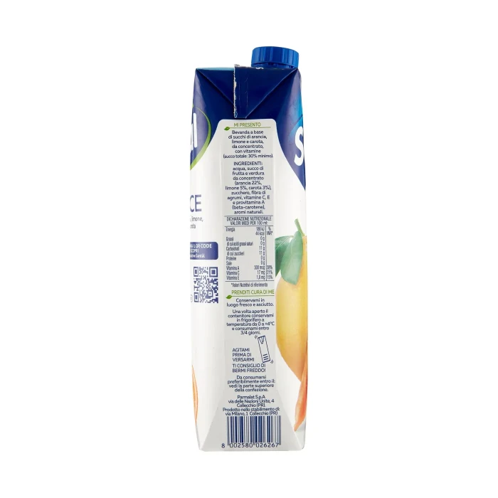 Succo di frutta e verdura da concentrato (arancia 22%, limone 5%, carota 3%)