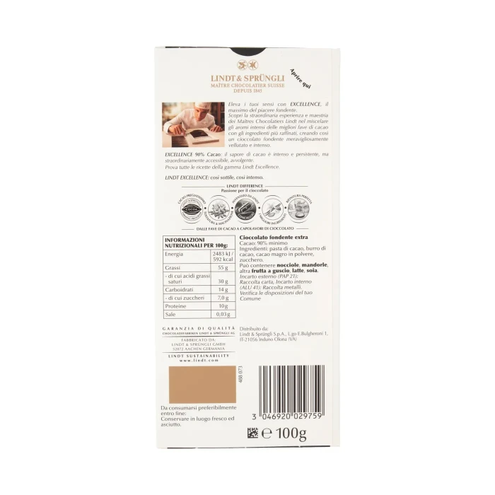 Lindt Excellence Tavoletta Cioccolato Fondente 90% 100 g